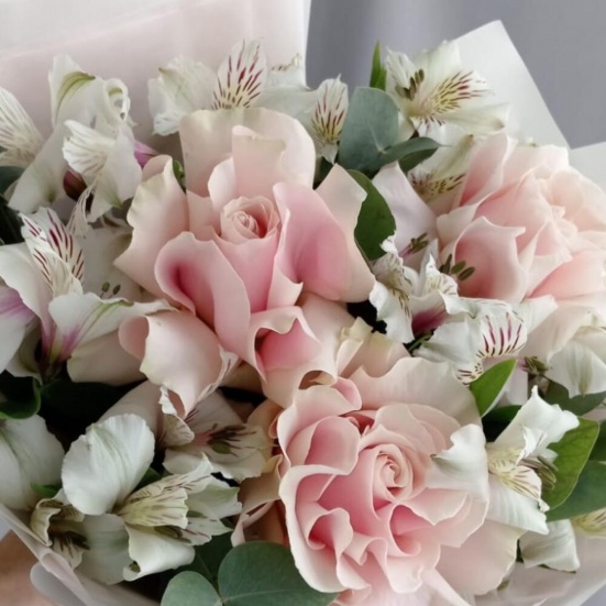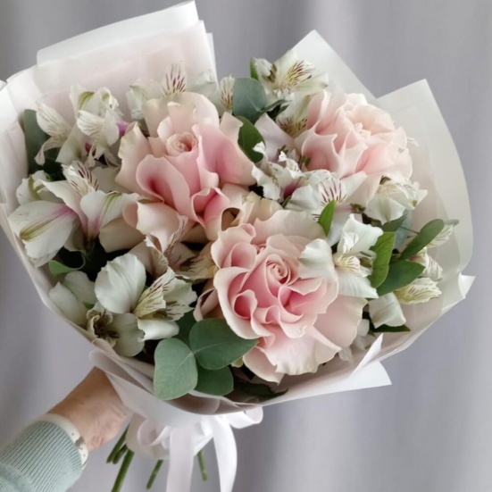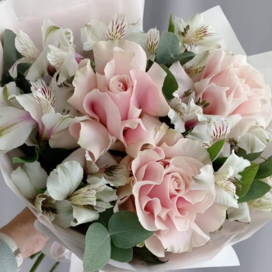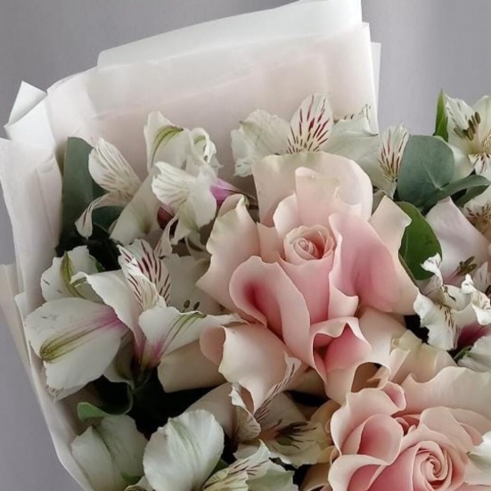 Букет из 3 французских роз и Альстромерии в Солнечногорске