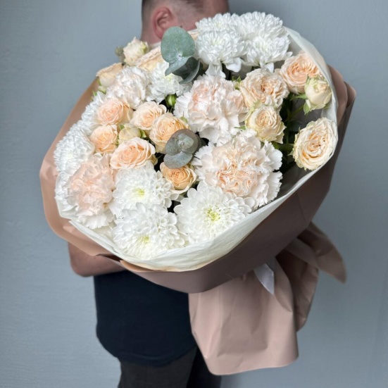 Букет из пионовидных роз и хризантем