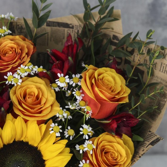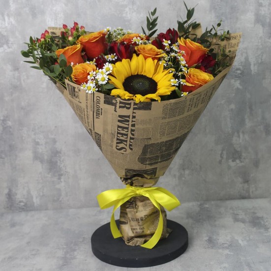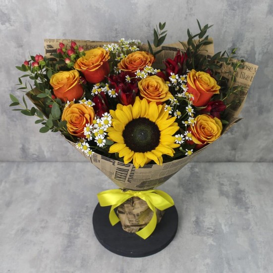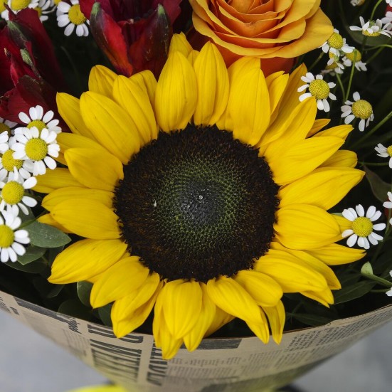 Букет с подсолнухами и другими цветами в Солнечногорске