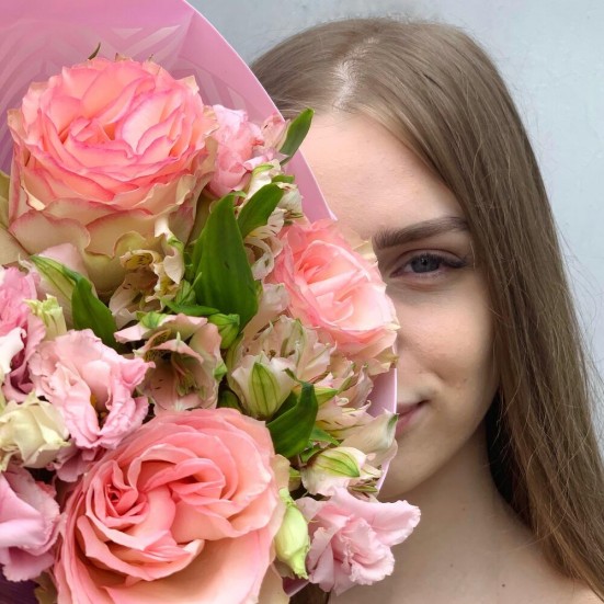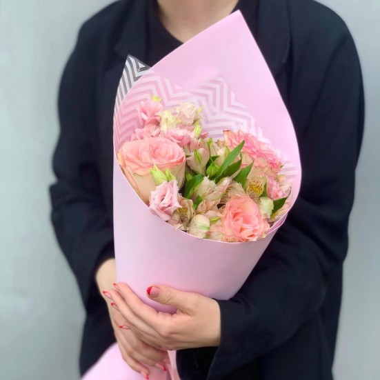 Букет из роз альстромерий и эустомы в Солнечногорске