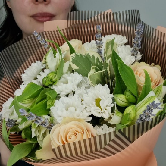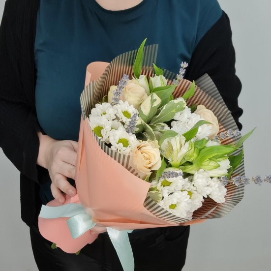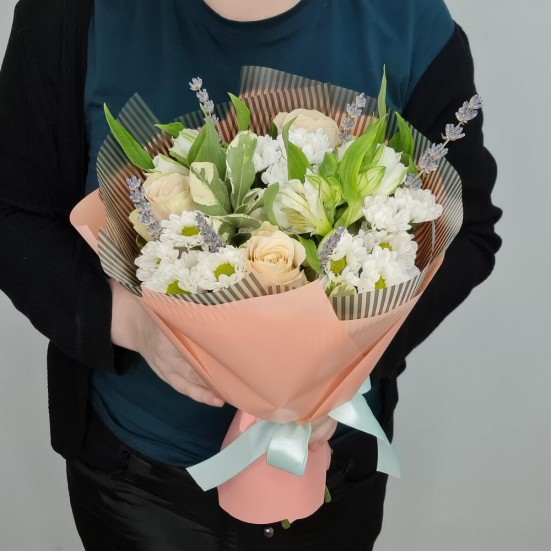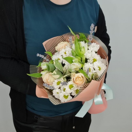 Букет из роз, хризантем и альстромерий