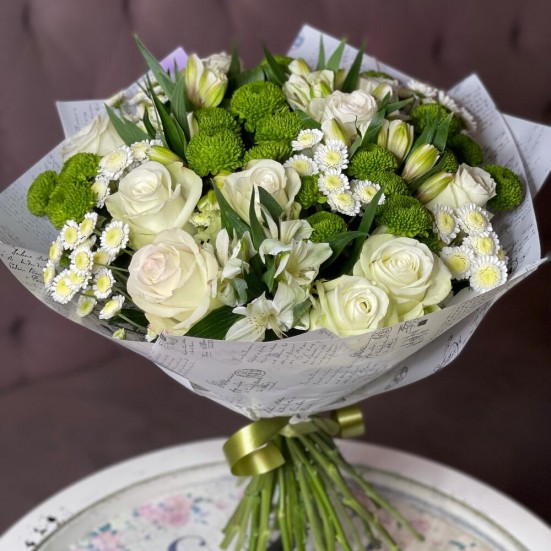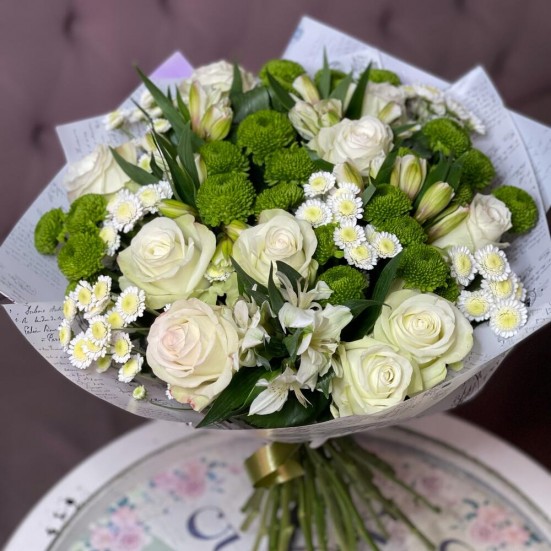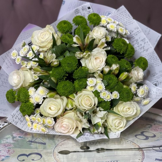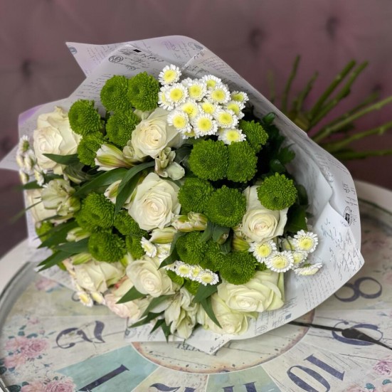 Букет «Розы и зеленые хризантемы» в Солнечногорске